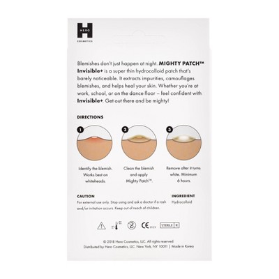 The 6-Hour Nose Patch Get clearer-looking skin in 6 hours with Mighty Patch Nose, the XL hydrocolloid patch that effortlessly handles pores and pimple clusters with all the gunk-absorbing power of Mighty Patch. hero patch acne patches cosmetics invisible mighty 24ct target Free standard shipping with $35 orders. Dermatologists are loving the Mighty Patch nose strips - Yahoo! Size: 10 ct.