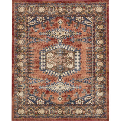 Ella Oriental Terracotta/Blue/Ivory Area Rug Timeless and classic, this collection offers vintage power loom looks at an affordable price.