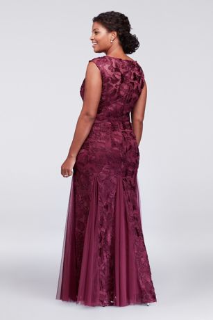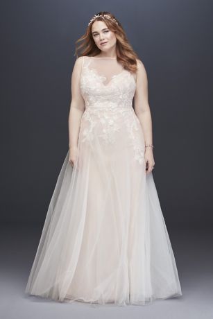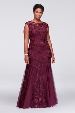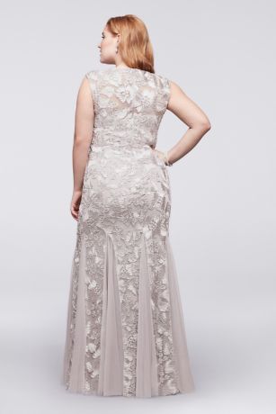Turn it on and enjoy the latest fashion! plus dress tulle embroidered sleeves dresses cap godets davidsbridal bridal david silver formal visit gown