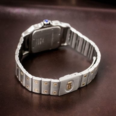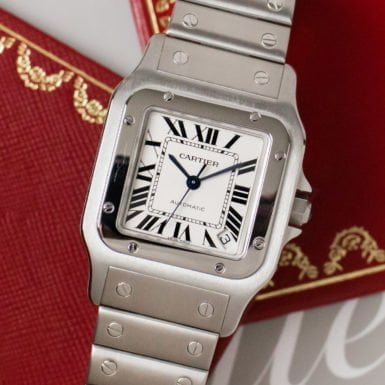 Measurements include a 29x41mm square case size and 18mm lug width. 187901) is an elegant stainless steel watch. Model Name: Cartier Santos Galbee Stainless Steel 29mm Quartz Watch 1564. Granting the wish of his Brazilian aviator friend Alberto Santos Dumont to be able to keep time easily while flying, the Cartier Santos was born.