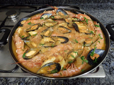 Fish Broth, Monk fish, Cod, Onion,carrot, celery, leek, tomato, fennel, virgin olive oil, salt Origin : Spain Ideal for: Paellas, rice dishes, fideu Fish soup Oven baked fish or any fish stew A natural, healthy and nutritive diet The entire family Potaje marinero de sepia, patatas y azafrn / Cuttlefish stew with potatoes and saffron Ingredients: 1l Aneto Fish Broth And we simmer them over a low heat for over 2 hours. Bring to a simmer and turn heat to low. Gluten free.
