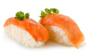 Quality Seafood sells sashimi-grade farmed Atlantic salmon ($7/lb) and Ahi tuna ($16/lb) but the quality varies. Sushi and Sashimi Nutrition . Sushi typesNigirizushi. This is the type of sushi you probably picture as soon as you hear the word sushi - it usually contains salmon or squid inside a ball of vinegared Gunkanmaki. Makizushi (a.k.a norimaki) Makizushi is when the rice and ingredients are wrapped up in seaweed (nori).